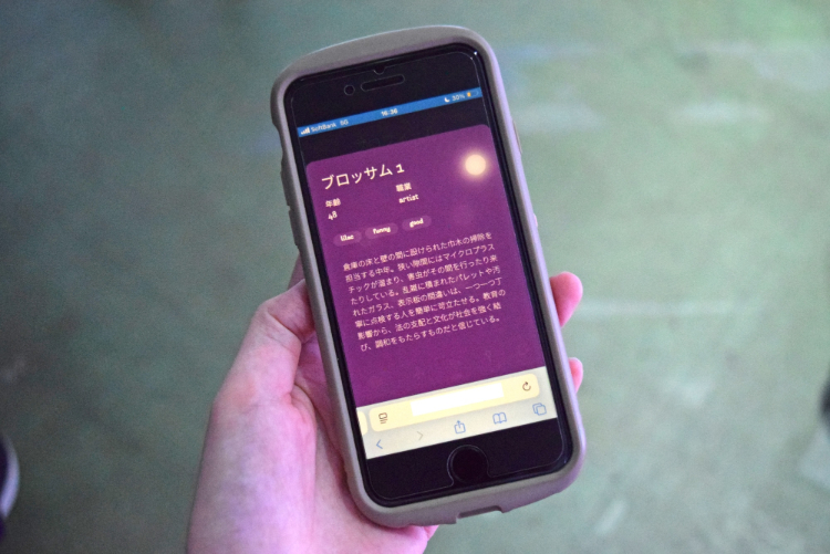 会場を訪れると、作品の一部としてハンドアウトが手渡されます。そこに掲載されたQRコードから専用のWebアプリケーションにアクセスすると、体験がスタート。