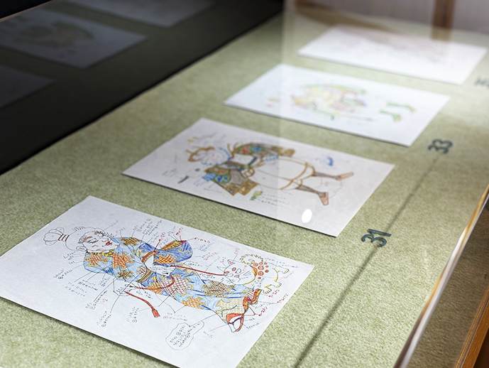 企画展では奥行きと立体感が出るための、陰影や配色などの原画メモも見ることができます。