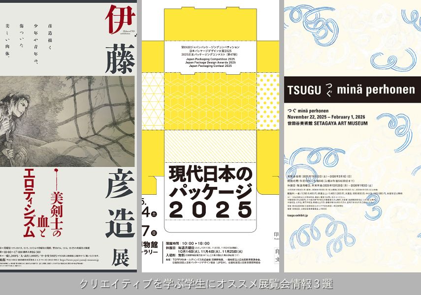 制作する上で“視点や視野を広げる”インプットの時間って意外と貴重ですよね。今回は、開催中または開催予定の展覧会の中から、デザイン/イラスト/マンガ、それぞれの制作の上で役立ちそうな展覧会を3つピックアップしました。授業終わりや週末のお出かけ候補に、ぜひチェックしてみてください。