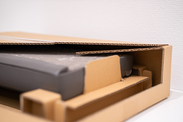 フラップを内側に折る加工をする事で、商品を支える役割になっている。