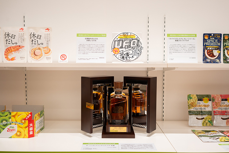 P&Pギャラリーの入口エントランスでは「第64回ジャパンパッケージングコンペティション」、「日本パッケージデザイン大賞2025」、「2025日本パッケージングコンテスト(第47回)」の大賞作品が出迎えてくれます。