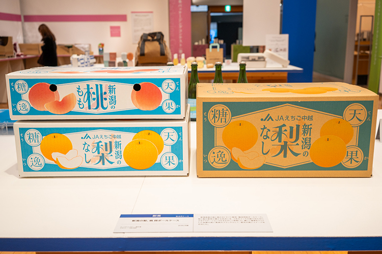 輸送用ケース部門で銀賞を受賞された「新潟の梨・桃 段ボールケース」です。
