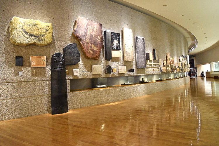 常設展 プロローグの展示室。古代から現代に至るまで、人々がどのように記録し伝えてきたのかを一望できます。