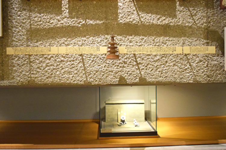 奈良時代につくられた《百万塔陀羅尼(ひゃくまんとうだらに)》のレプリカ。「印刷の日本史」コーナーには、原物が展示されています。