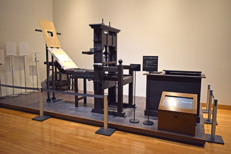 東アジアには、15世紀より前に活版印刷がありましたが、活字の上に紙などを敷き、バレンで刷る方法をとっていました。