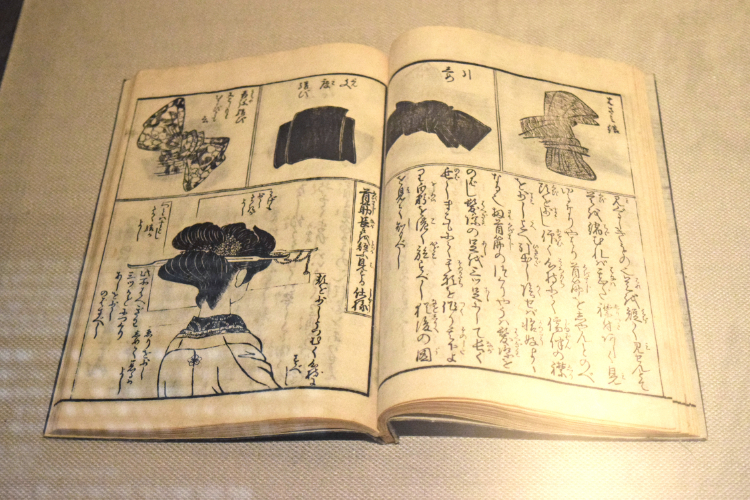 佐山半七丸 著、福井久兵衛 刊『都風俗化粧(けわい)伝』(1813年)。おしゃれな髪の結い方が解説されています。