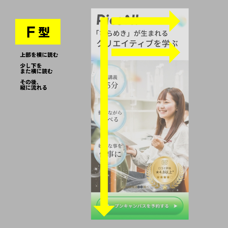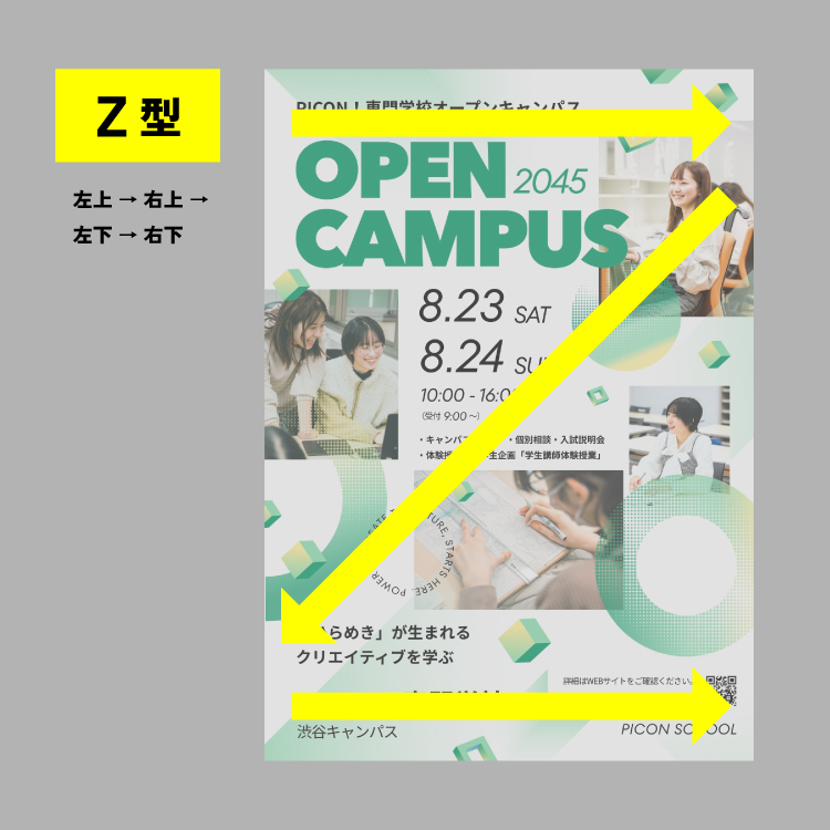 視線が 左上 → 右上 → 左下 → 右下 と、Zの形に動くといわれています。