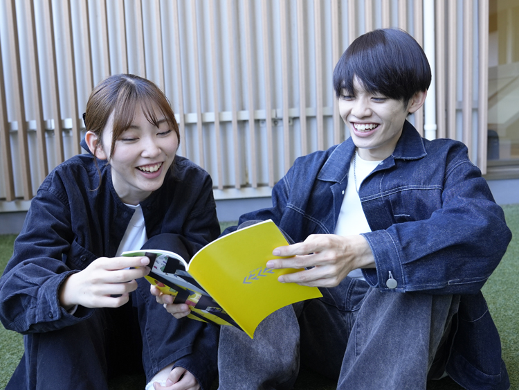 田中:もともと医療関係の学校に進む予定でした。高校3年生の進路を決めるタイミングで、「私のやりたいことってなんだろう」と自分を見つめ直した時に、幼少期から絵を描くことや、もの作りが好きだということに気づいて、デザイン系への進学を考えるようになりました。両親も賛成してくれて、デザインの学べる学校選びをする事になりました。NDSのホームページやパンフレットが一番良いと思い、NDSに入学を決めました。グラフィックデザインに興味がある高校生は、学校のパンフレットや、ホームページのデザインで学校を選んでいる人は多いと思います!