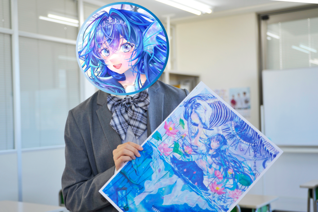 「第23回高校生マンガ・イラストグランプリ」にて、数ある作品の中から見事に「イラストグランプリ」を受賞されたのは、鹿島朝日高等学校3年生の永田月奈さん。作品の描写力はもちろん、アイデアと構成力が評価されての受賞となりました。