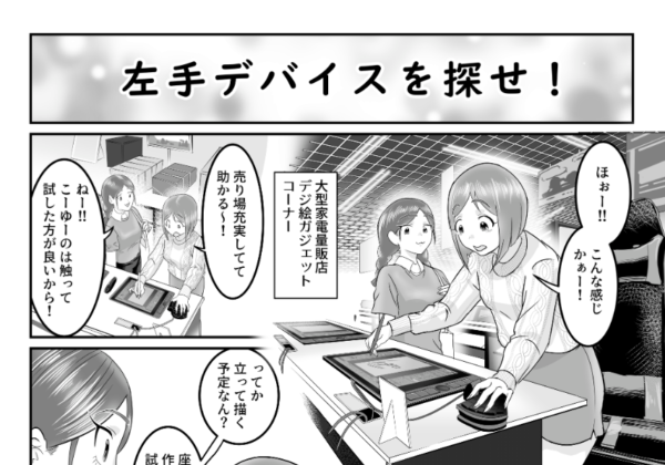 イラスト制作を効率化したい人必見!② 前回紹介した「左手デバイス」を探すため、二人は家電量販店へ旅に出ることに。作業の ”相棒”...
